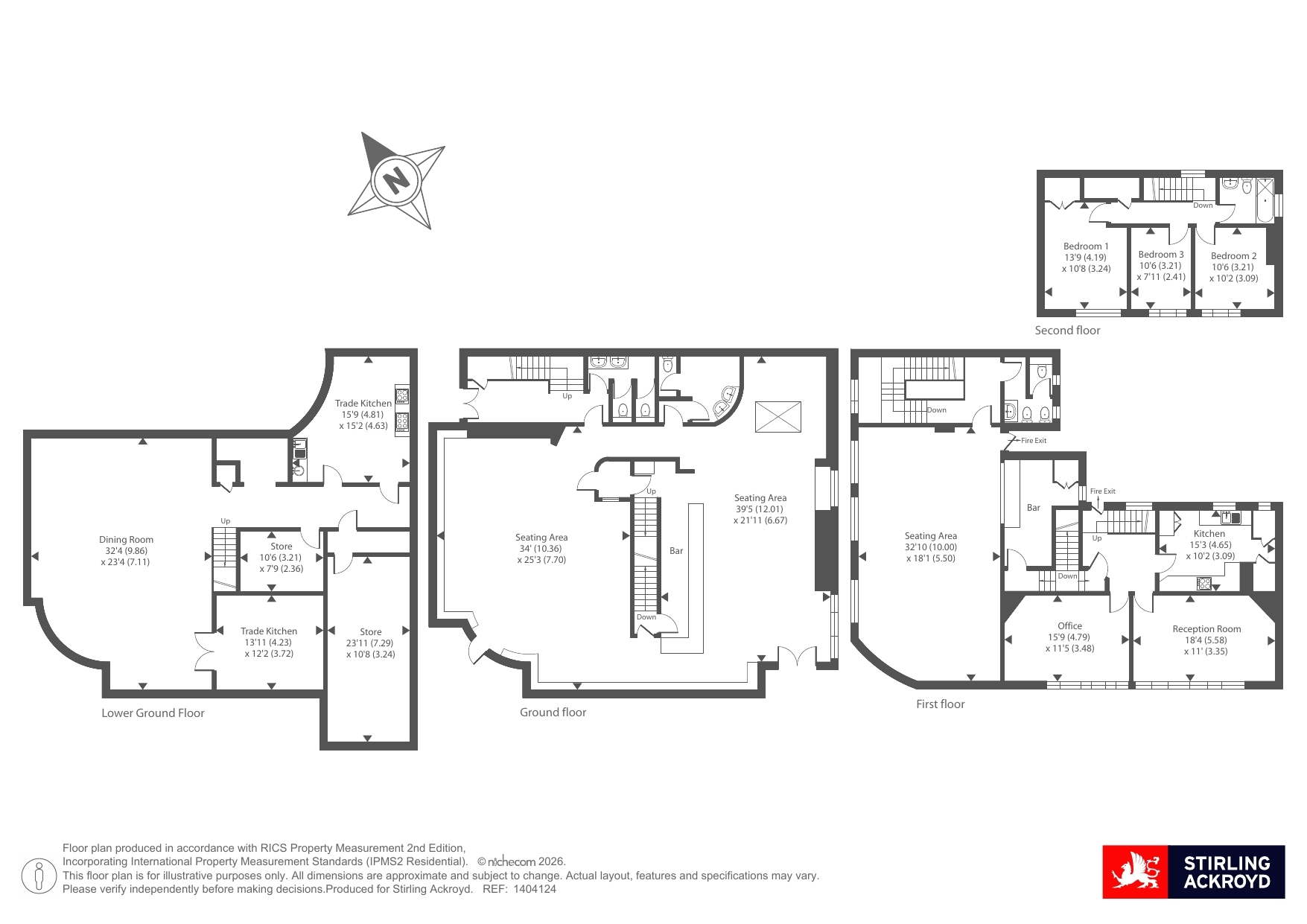 Ground Floor: 1,937 sq ft - Open-plan hall, lobby and bar area with separate male and female toilets.