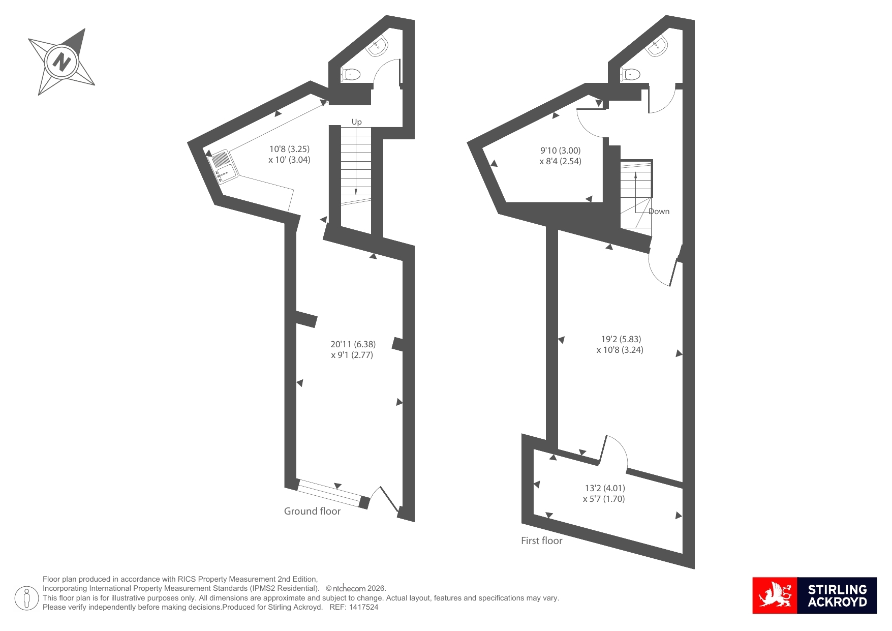 - Total Floor Area 611 sq ft - Ground Floor 320 sq ft and Basement 291 sq ft